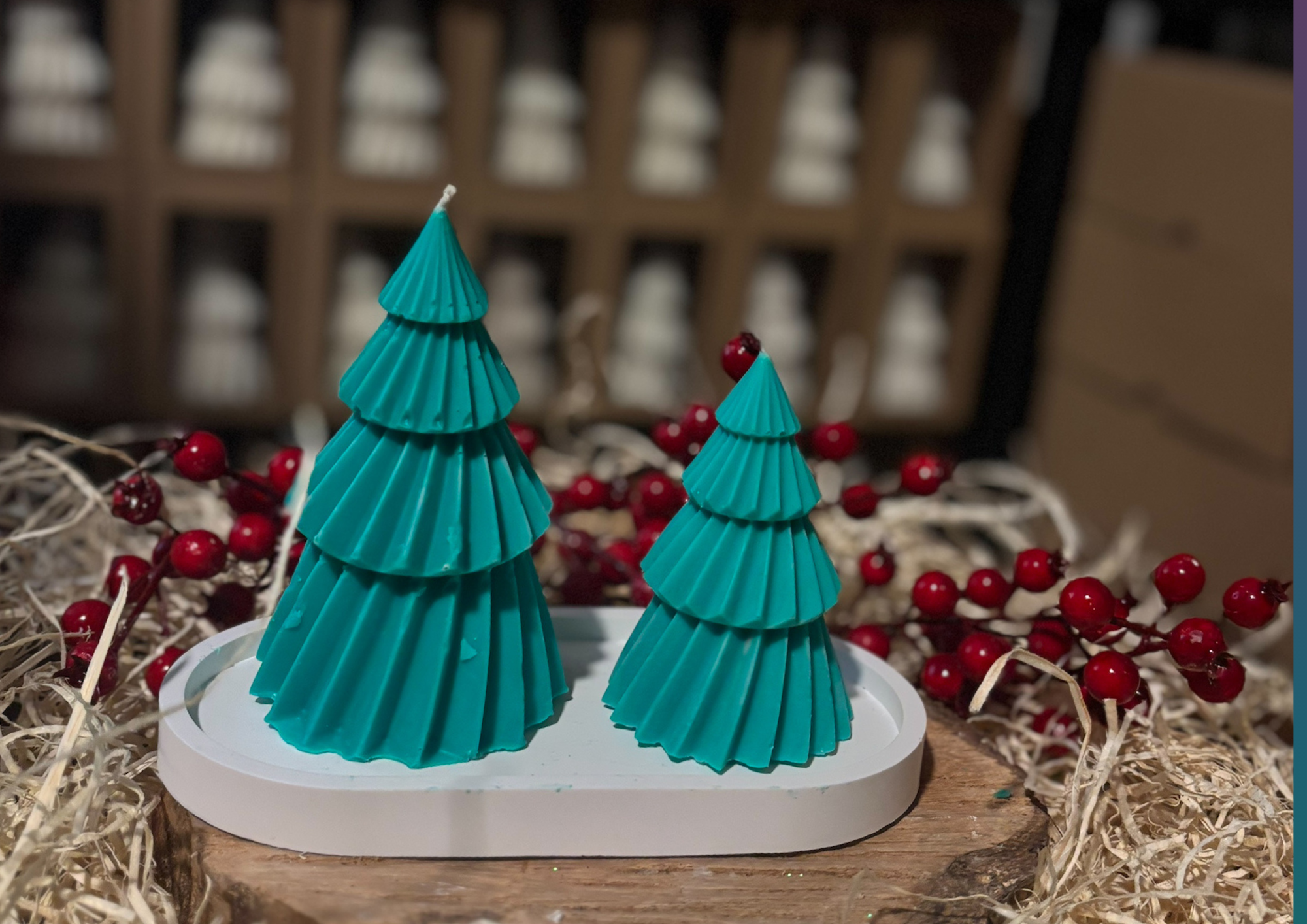 bor L, svijeća zeleni bor S, te podložak izrađen od gipsa. Svijeće